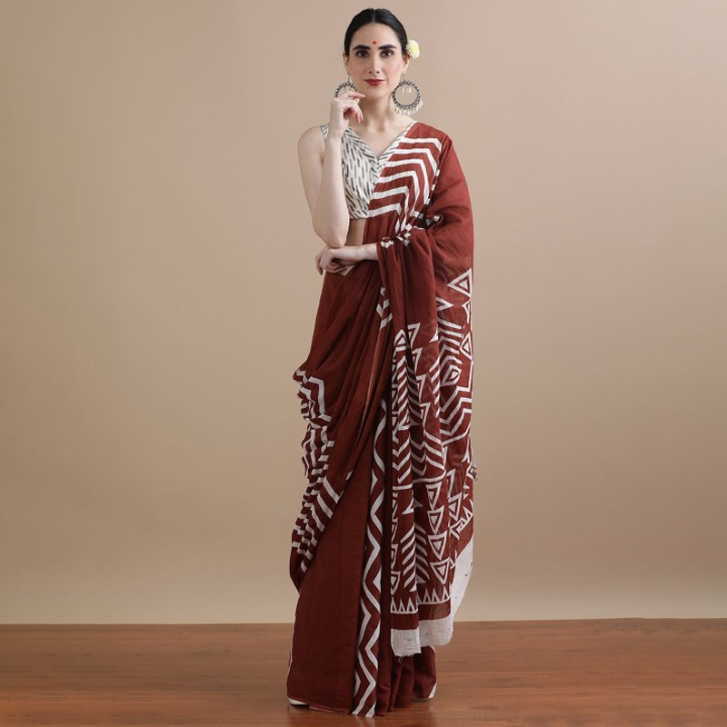 Navy Blue & Fuchsia Woven Design Zari Silk Cotton Saree