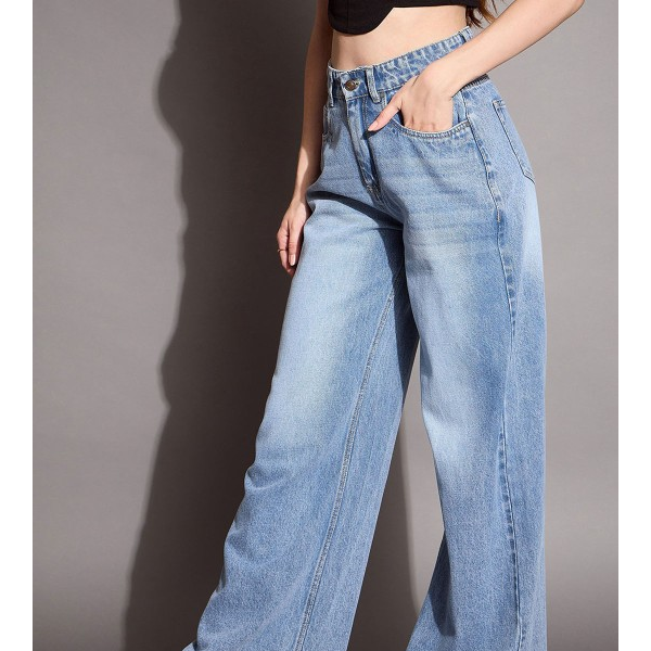 Women Airy Denim Mid-Rise Heavy Fade Pure Cotton Skater Fit Jeans