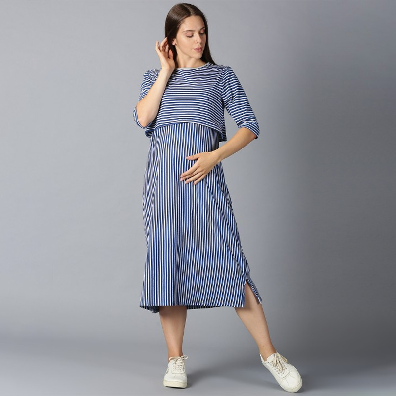 Women Maroon Solid Maternity Nursing Maxi Dress