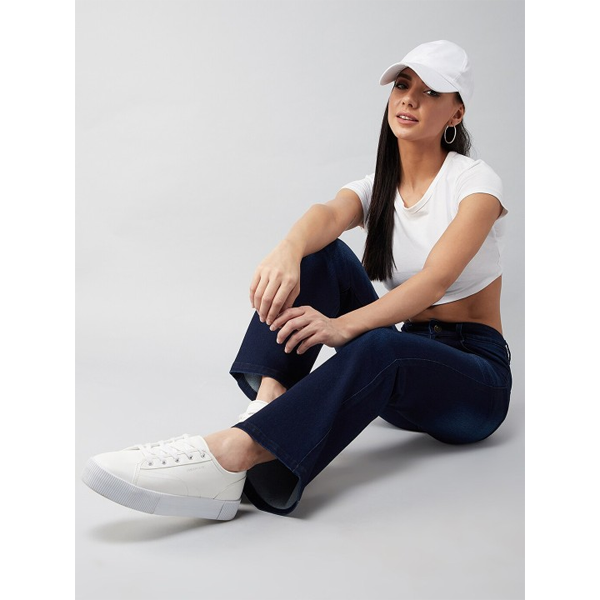 Women Airy Denim Mid-Rise Heavy Fade Pure Cotton Skater Fit Jeans
