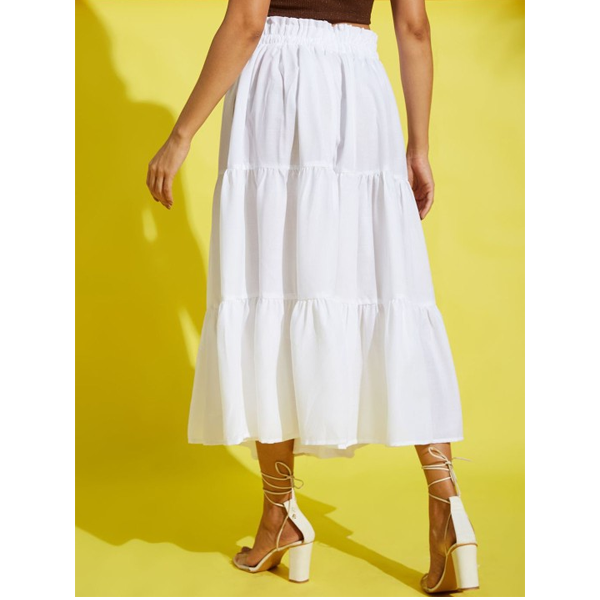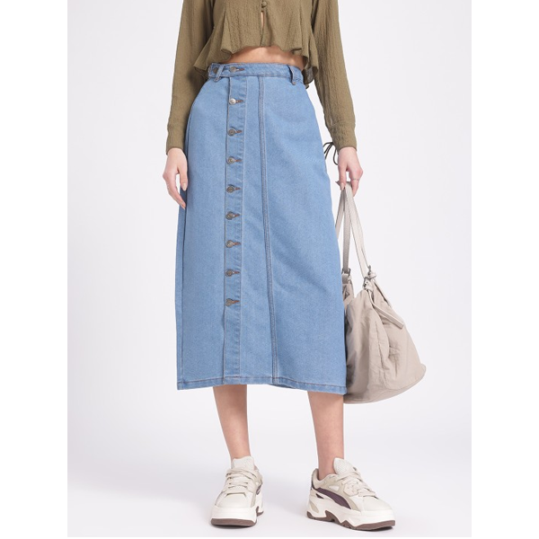 Denim Power Light Fade Pure Cotton Midi A-Line Skirt with Frayed Hem