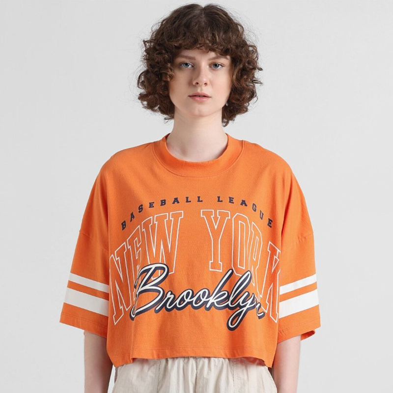 Typography Printed Round Neck Oversized Pure Cotton T-shirt