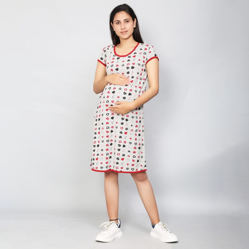 Women Grey & Red Printed Maternity Tunic